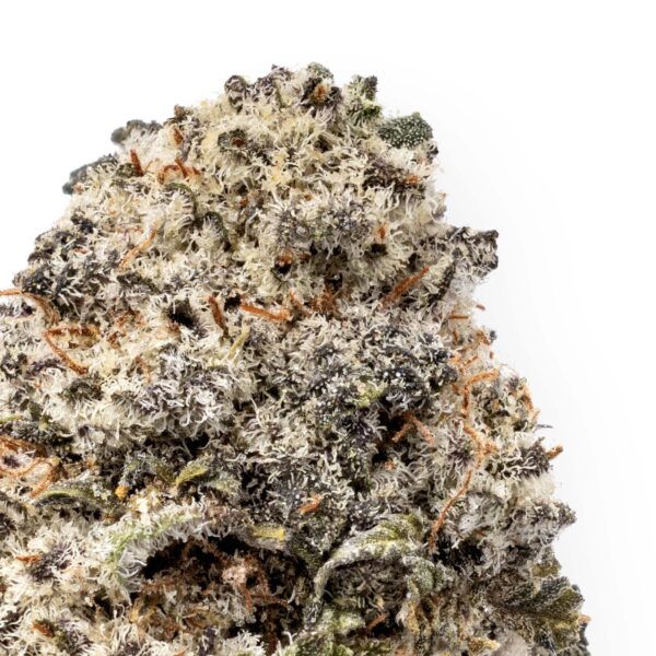 Blackberry Kush is a potent indica strain that typically contains around 18 – 20% THC, offering users a powerful, calming high. The buds are dense and coated with a thick layer of trichomes, giving them a frosty appearance. These vibrant buds feature deep purple, black, and yellow hues, accentuated by fiery red pistils. The strain is known for its smooth, sweet Kush aroma, which is heady but not overwhelmingly pungent. On the flavor front, Blackberry Kush lives up to its name, offering a subtle berry taste that complements its earthy Kush undertones, making for a delightful and well-rounded smoking experience.