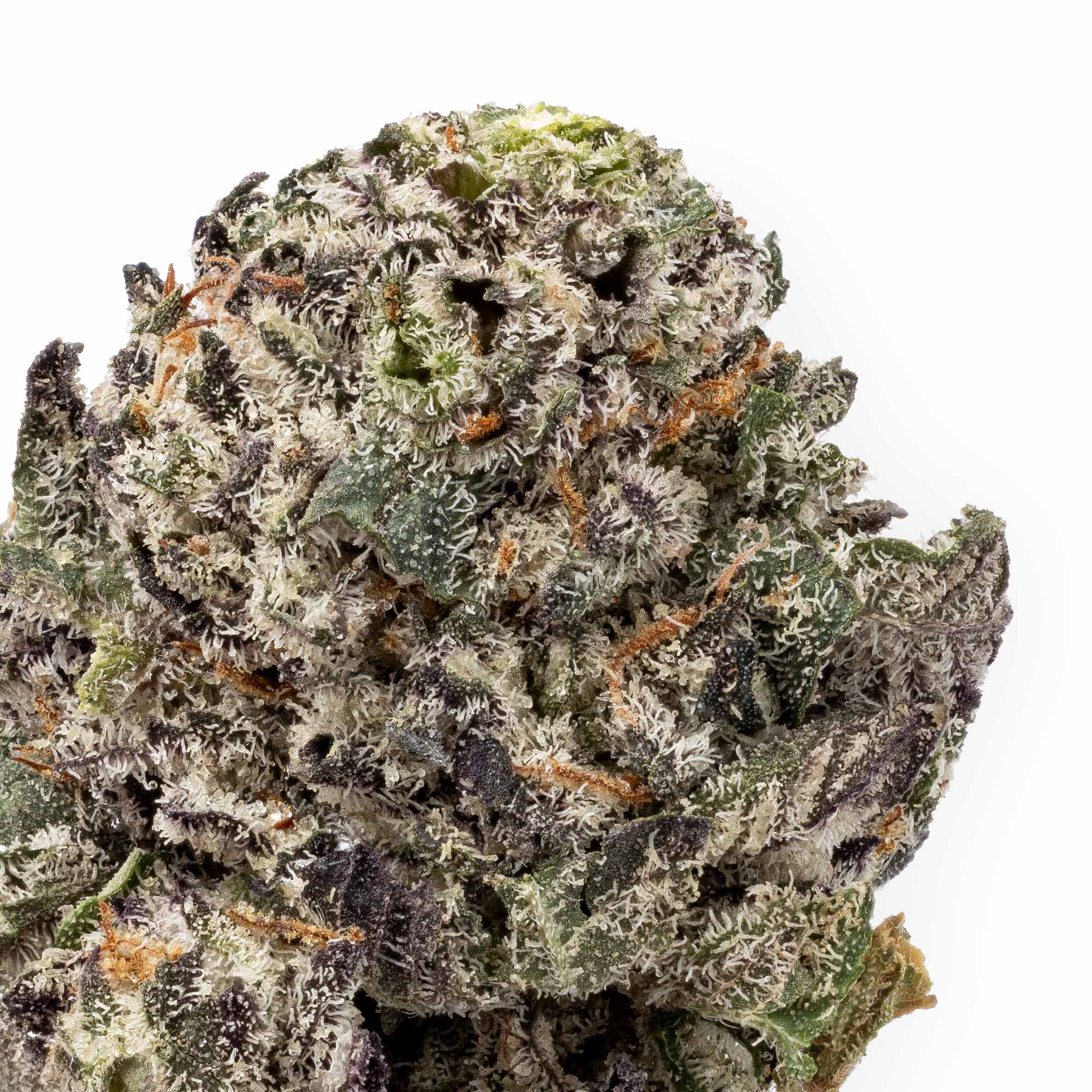Visually, it’s bold: long, minty green nugs threaded with bright amber hairs and buried under a thick, frosty blanket of amber crystal trichomes. Sticky, pungent, and unapologetically powerful.