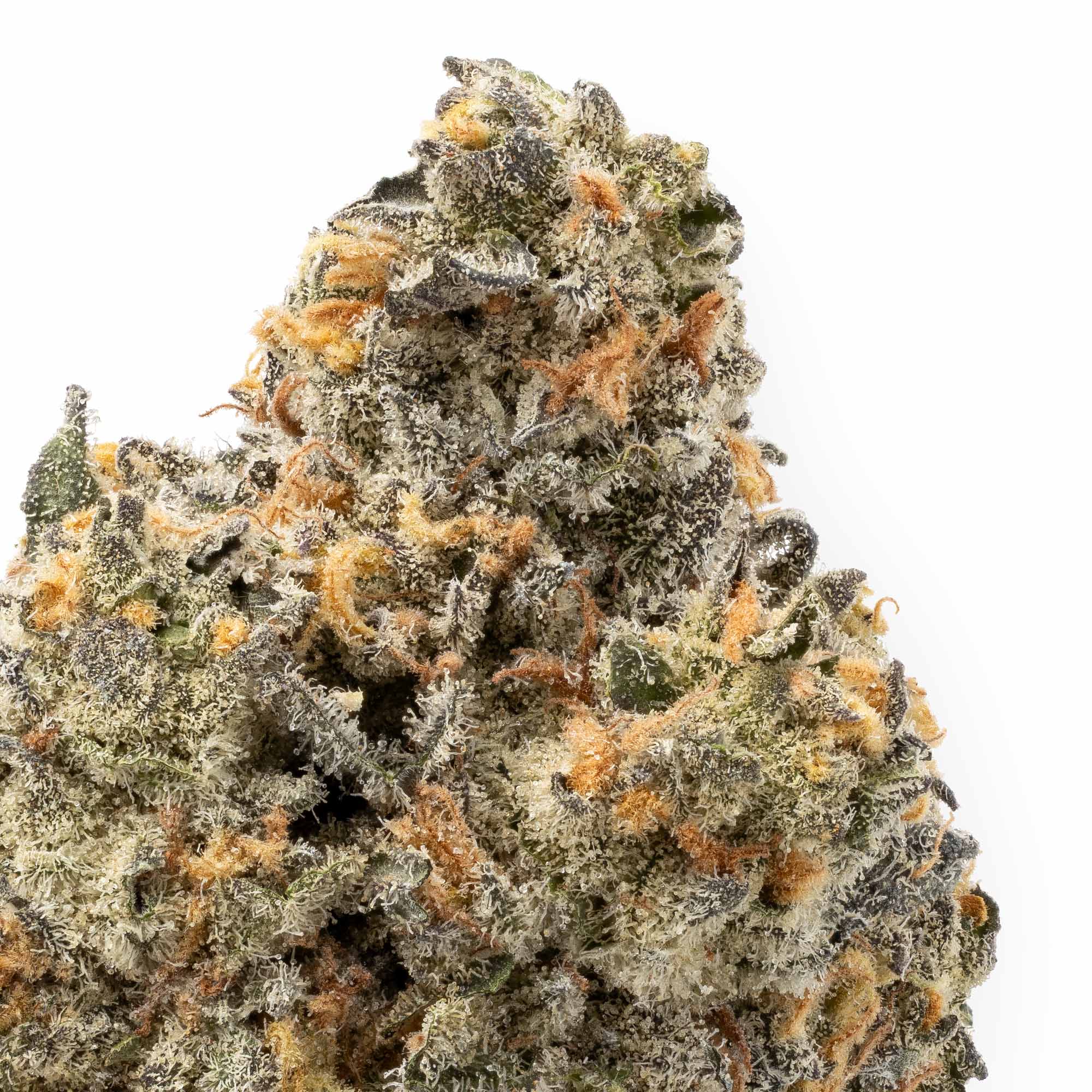 The buds are thick, dense, and visually stunning. Rock-hard forest and neon green nugs highlighted by vivid orange and yellow hairs and drenched in a sticky layer of golden-white crystal trichomes.